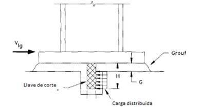 • Resistencia de la columna y placa base, o de la llave de corte si es que hay, contra la superficie de hormigón.